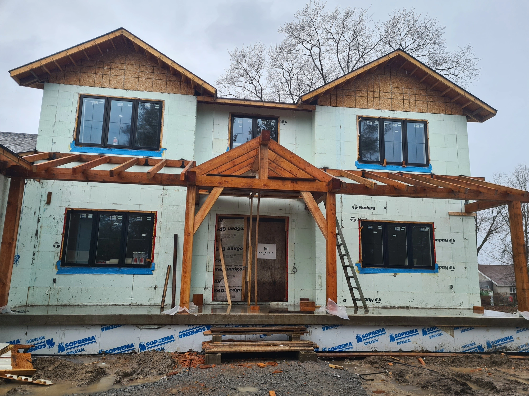 Anchored in Willow Beach, Ontario, the Georgina Project is an impressive home that thrives with the benefits of Insulated Concrete Forms (ICFs). Built with Nudura® ICFs—including all three levels, a 1,050 sq. ft. garage, and a cold cellar—this house exemplifies the energy efficiency, durability and comfort possible with ICF construction. For mounting the gorgeous façade, Nudura’s brick ledge forms were used around the entire perimeter of the home for a stone skirt and accent walls.